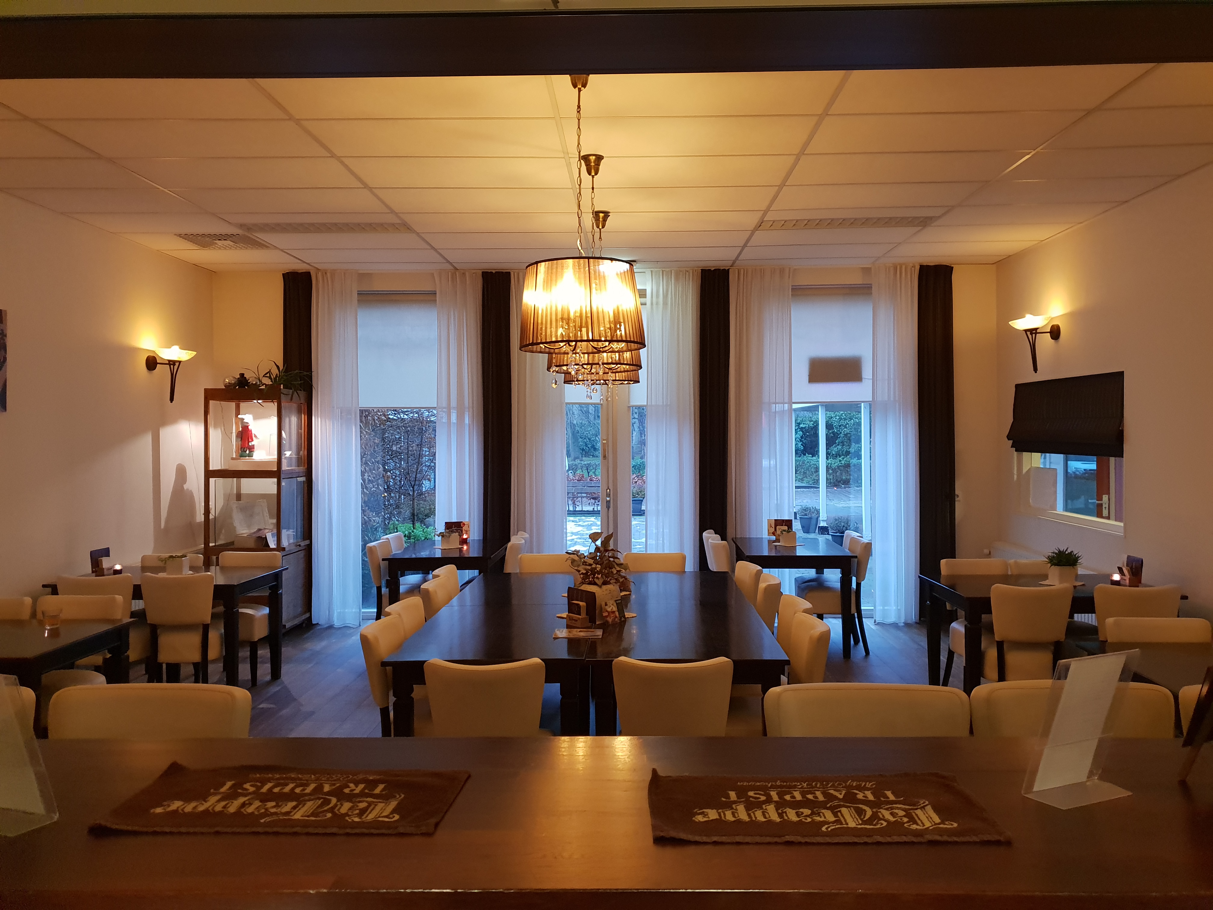 En met het zonnetje erbij, uitzicht op terras en de kerk, kan het helemaal niet meer stuk. Wil je hier een feestje houden kan dat natuurlijk ook !!! Deze zaal is 50 ² meter, heeft 42 zitplaatsen waarvan 6 krukken aan de bar.